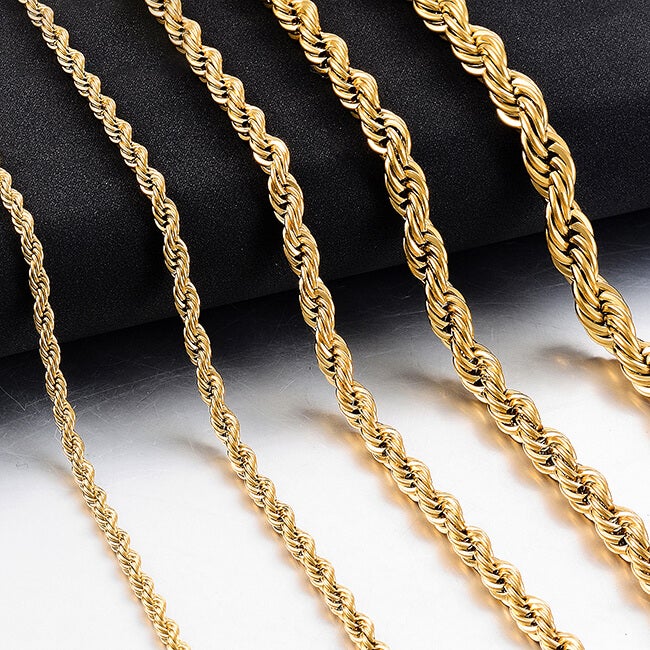 Rope Chain 2mm-6mm Gold Plated Necklace