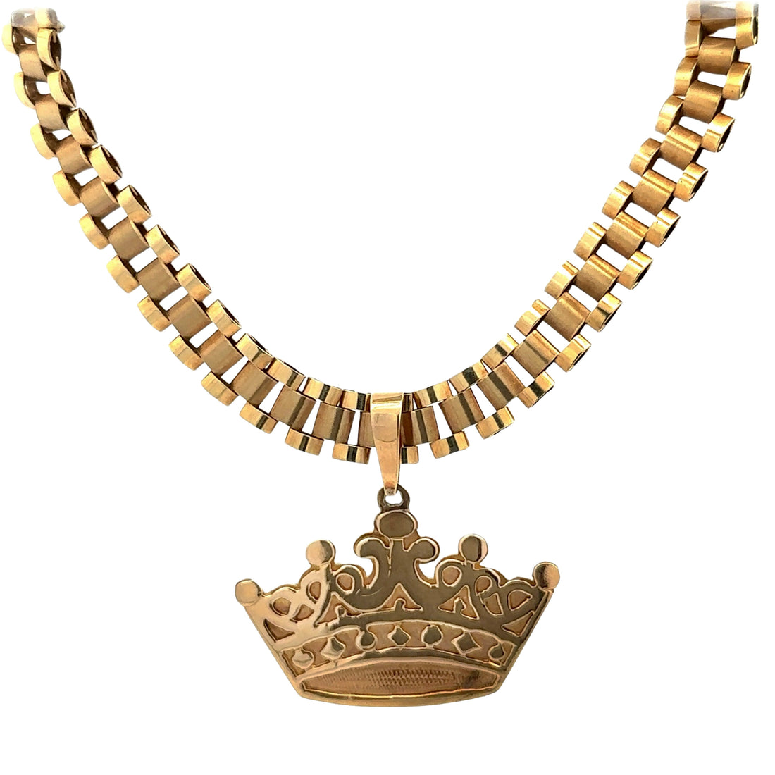 RX Style Chain Gold Plated Crown Pendant Necklace 10mm Width