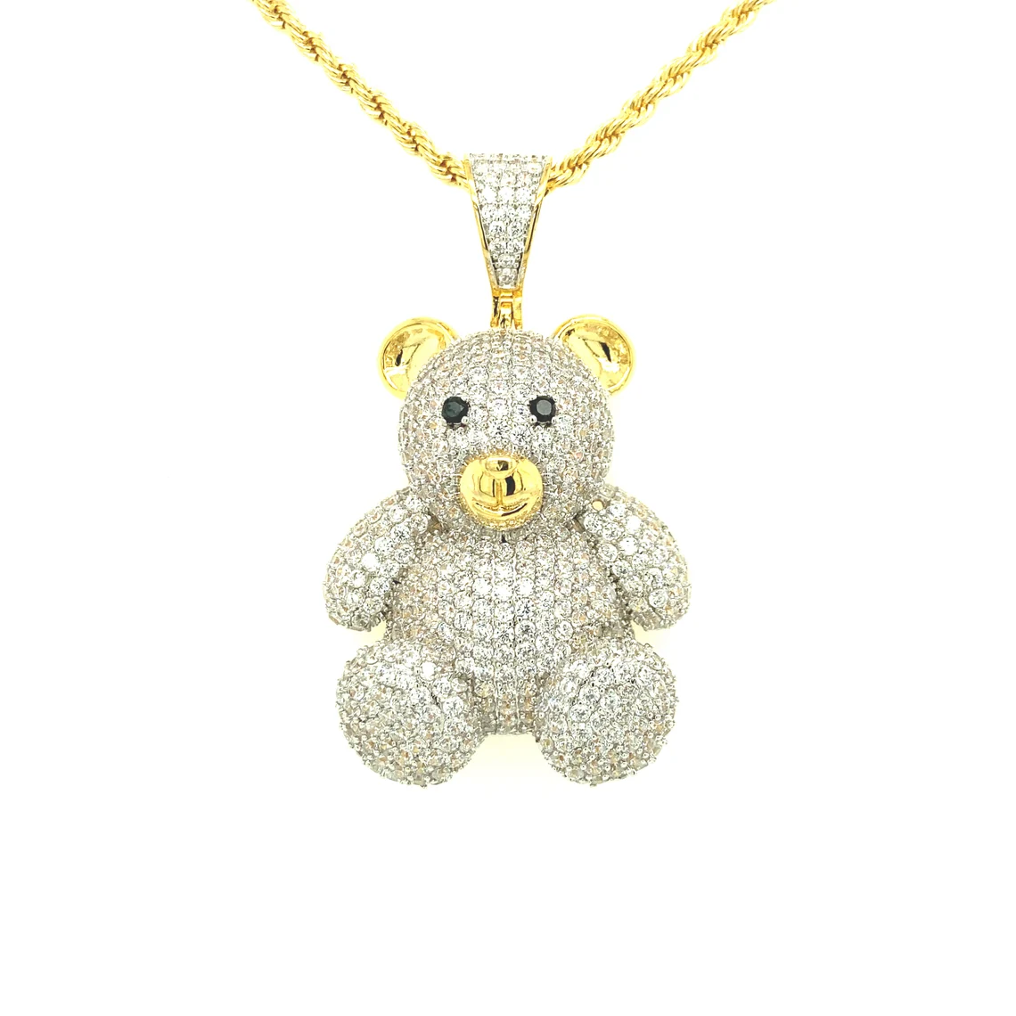 Cute Bear Pendant Iced Out Gold Plated Necklace