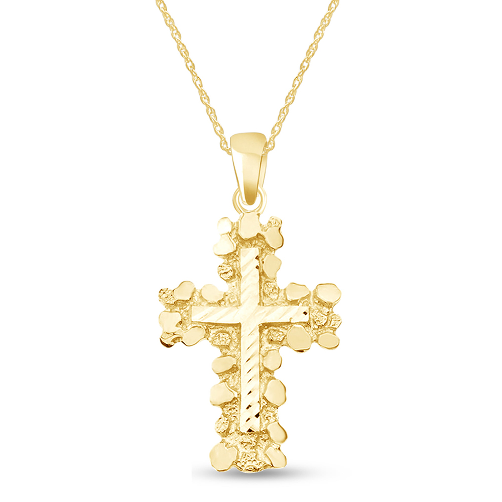 Nugget Cross Pendant Necklace Gold Plated Cross Necklcace