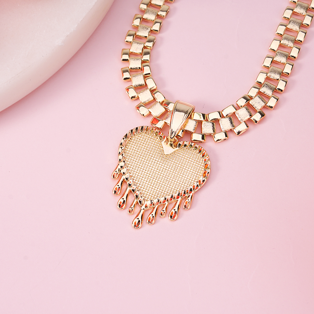 Presidential Link Chain Dripping Heart Gold Plated Pendant Necklace