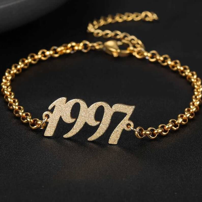 Year Date Personalized Custom Gold Plated Number Bracelet