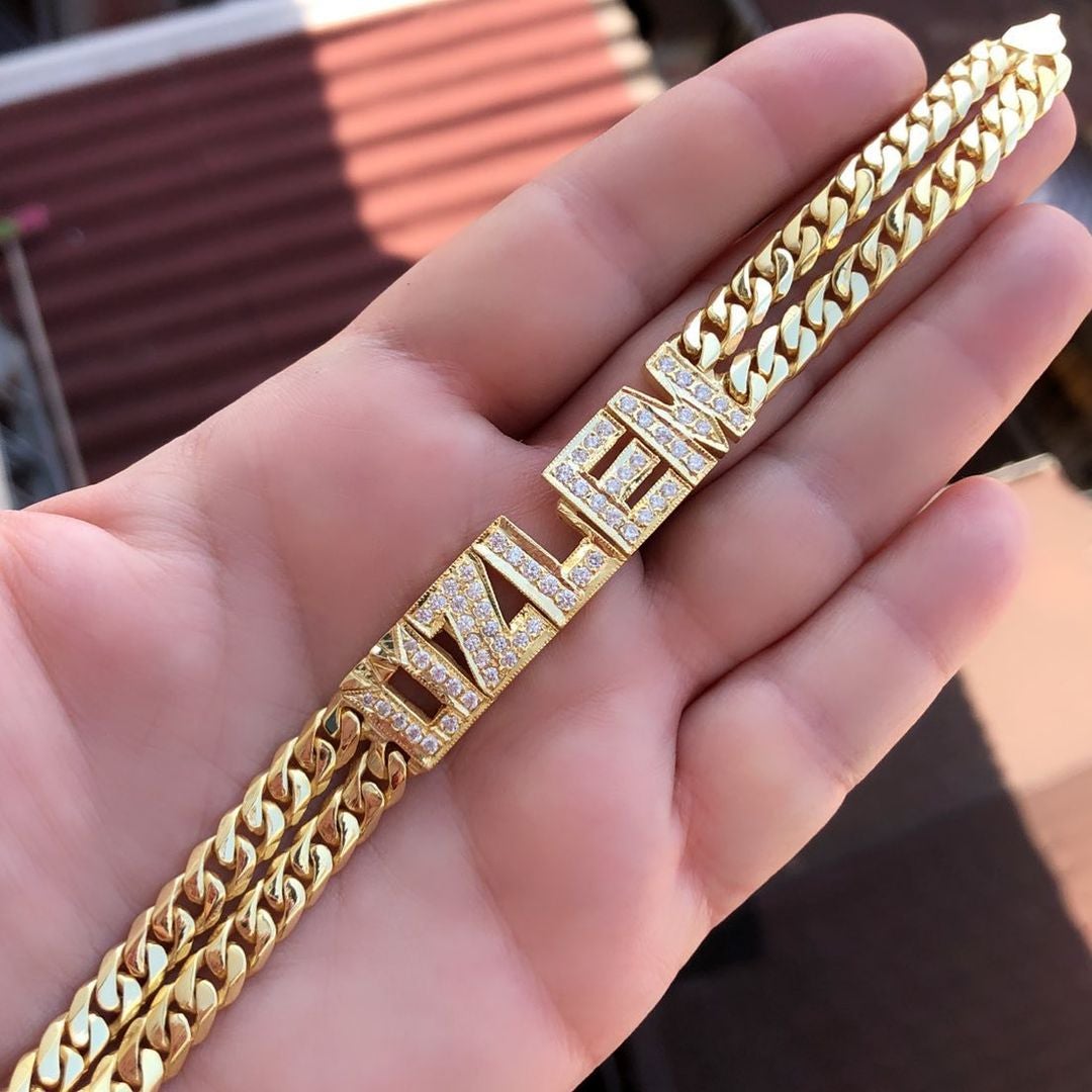 Personalized Name Bracelet Gold Plated With Cuban Chain