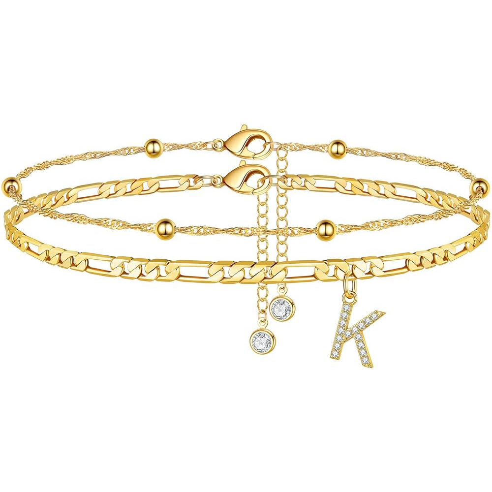 Figaro Chain CZ Initial Anklets Personalized Cutom Initial Anklets