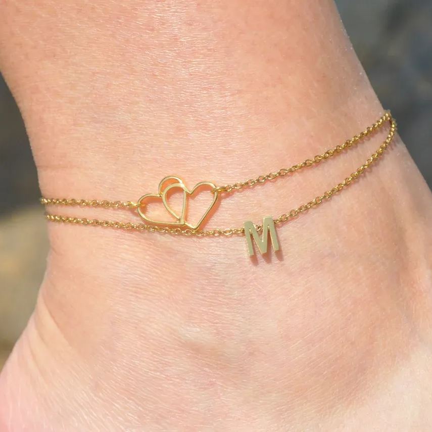 Gold Plated Personalized Double Layer Chains Letter Anklet