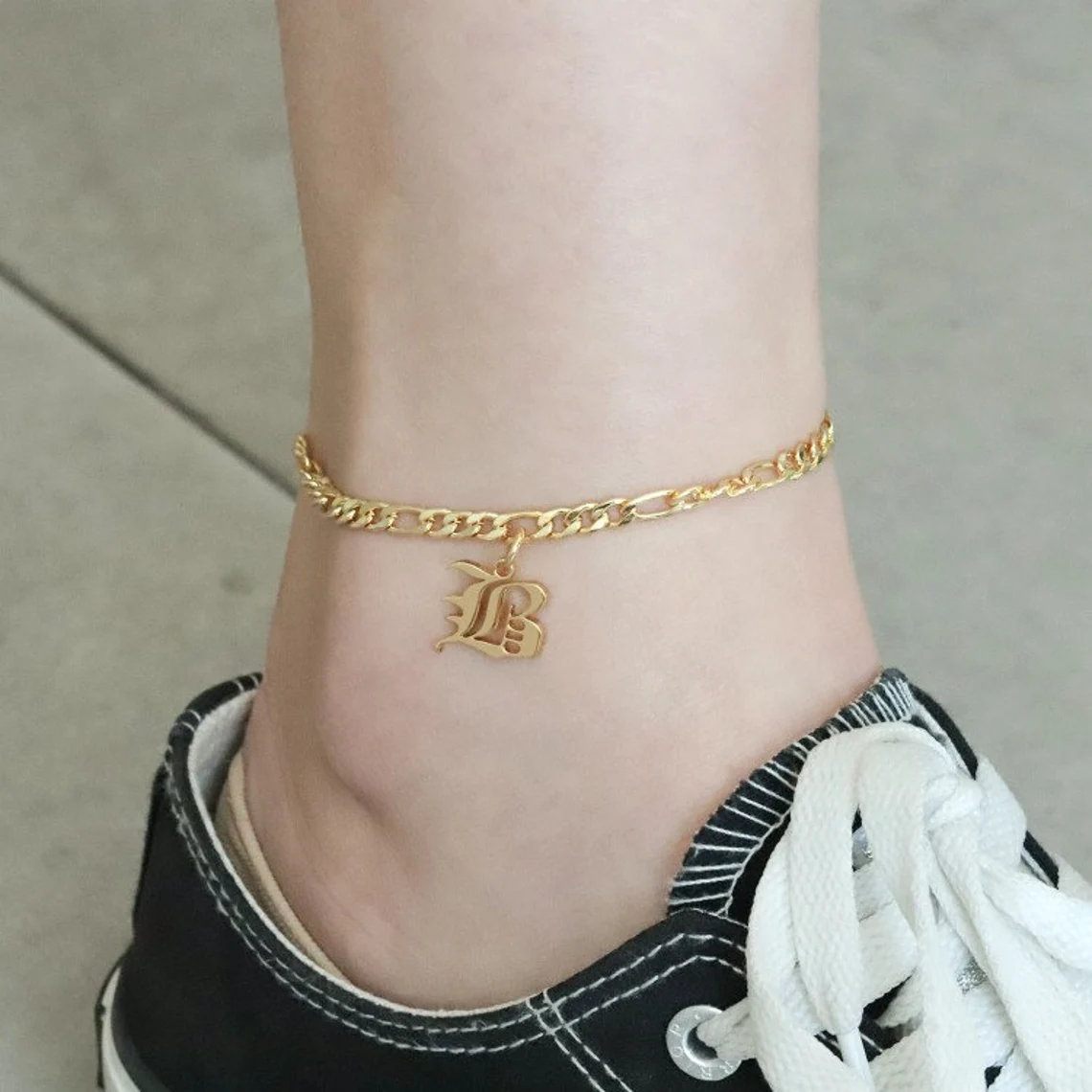 Old English Letter Anklet Personalized Gold Plated Initial Anklet