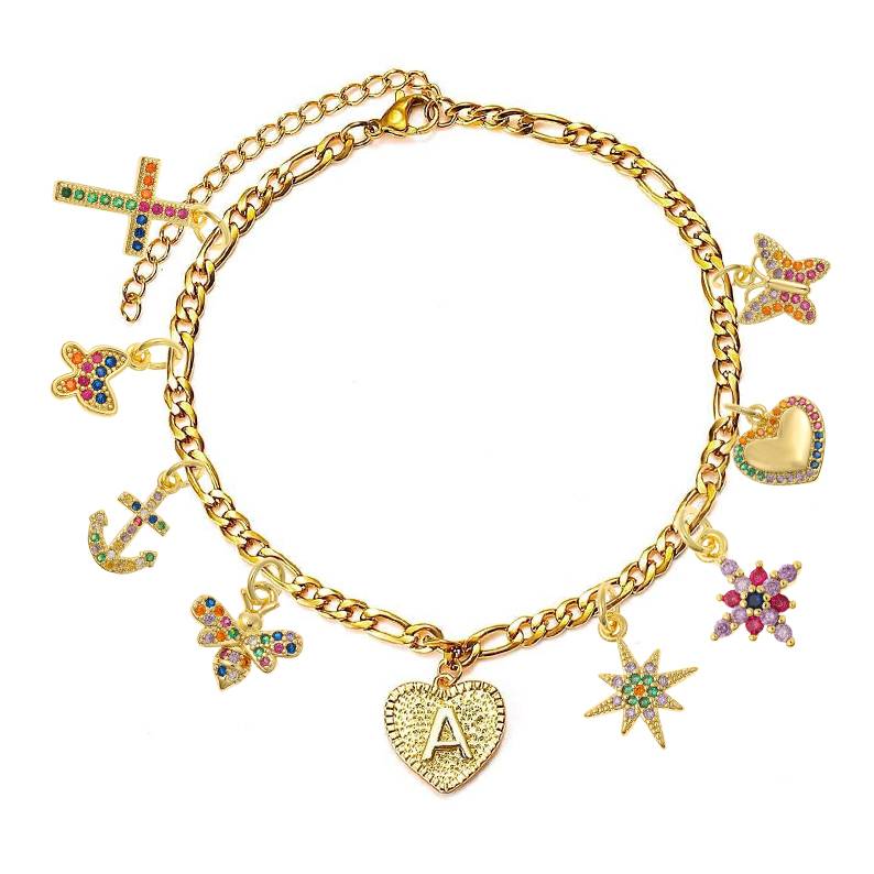 Gorgeous Cross Butterfly Star Pendants Personalized Initial Anklet