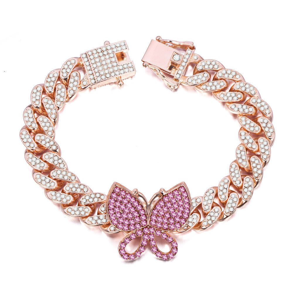 Iced Out Cubic Zirconia Butterfly Cuban Chain Bracelets
