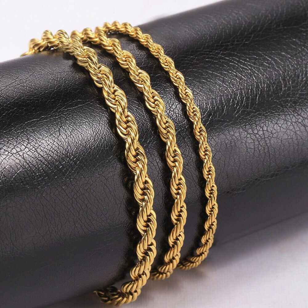 3-5mm Rope Chain Gold Plated Bracelet