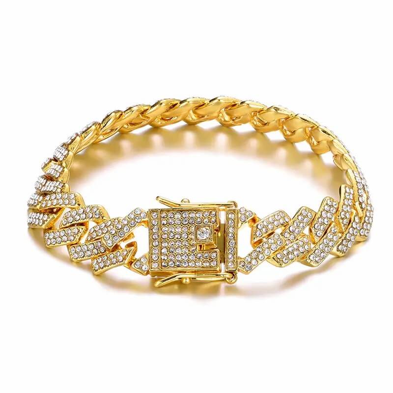 13.5mm Cuban Chain 2 Row Iced Out Bling Rhinestone Zircon Paved Gold Plated Bracelet