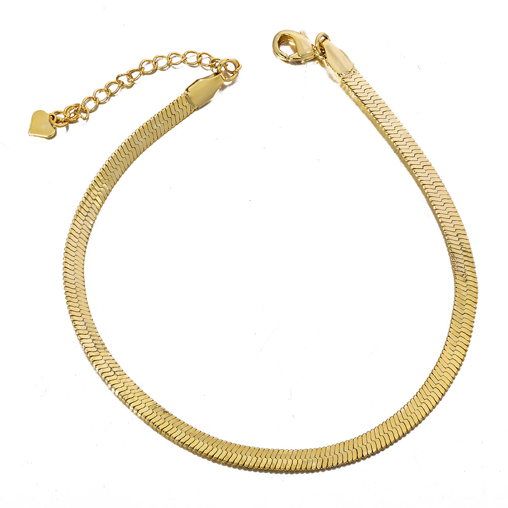 4mm Gold Herringbone Chain Bracelet Flat Snake Bracelet