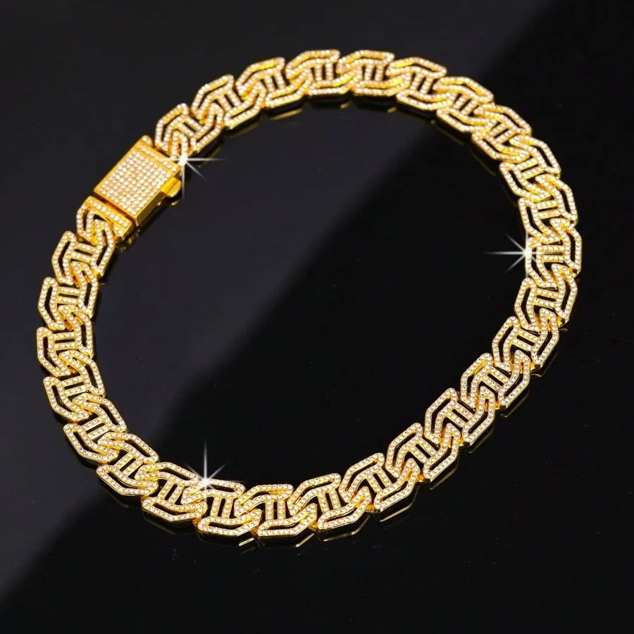 Diamond Cut Square Lock Chain Alloy Hip Hop Bracelet