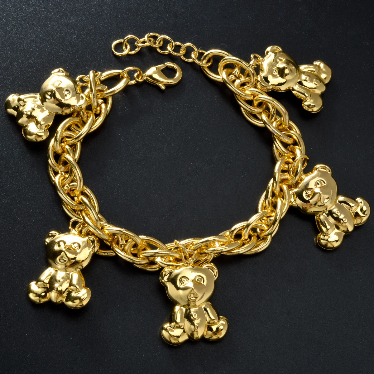 Gold Plated Bear Pendant Charms Twist Hand Link Bracelet