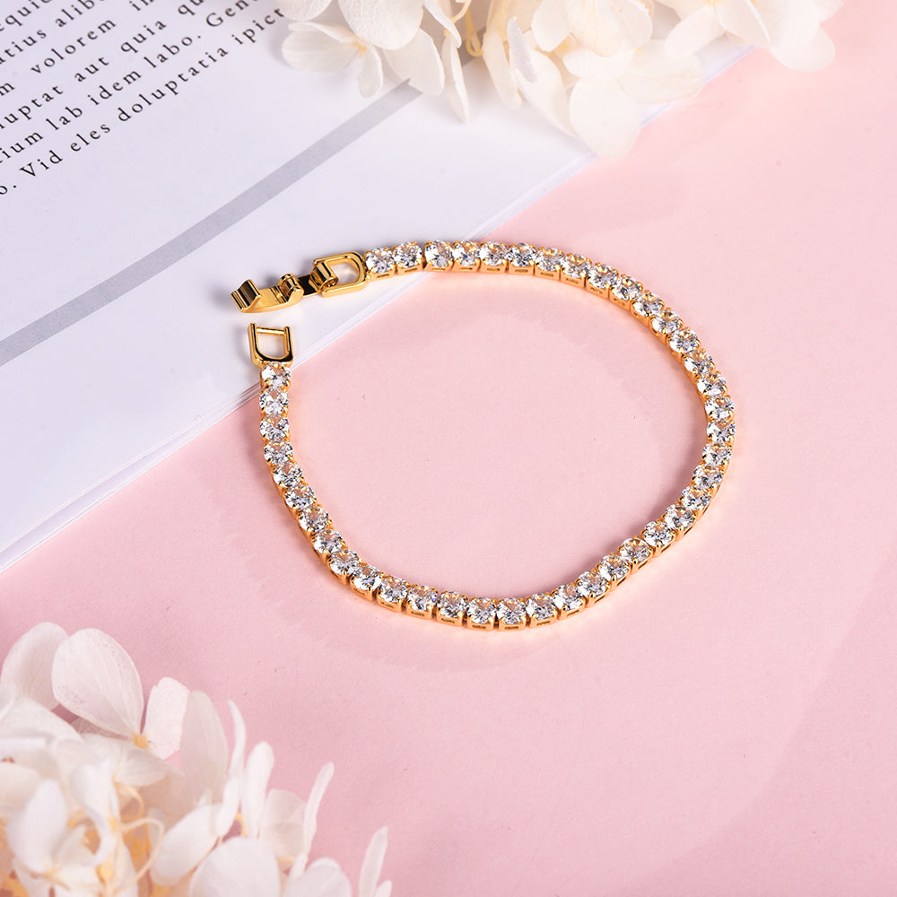 4mm Cubic Zirconia Classic Tennis Bracelet Gold Plated Bracelet