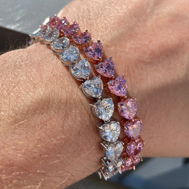 Diamond Heart Tennis Chain White Gold Rose Gold Hip Hop Bracelet