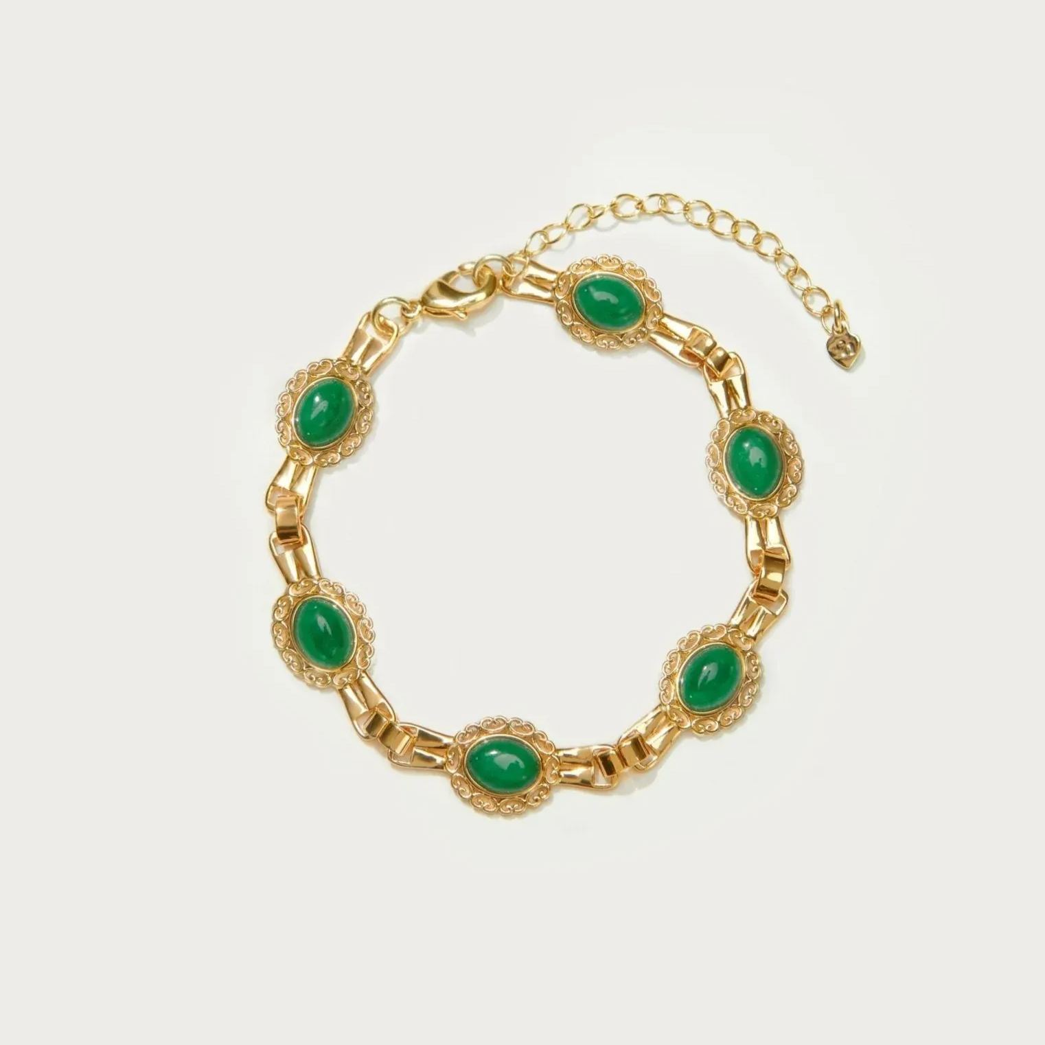 Green Diamond Lock Chain Gold Plated Bracelet