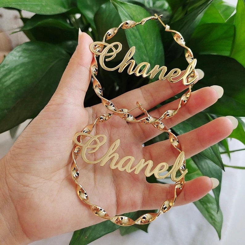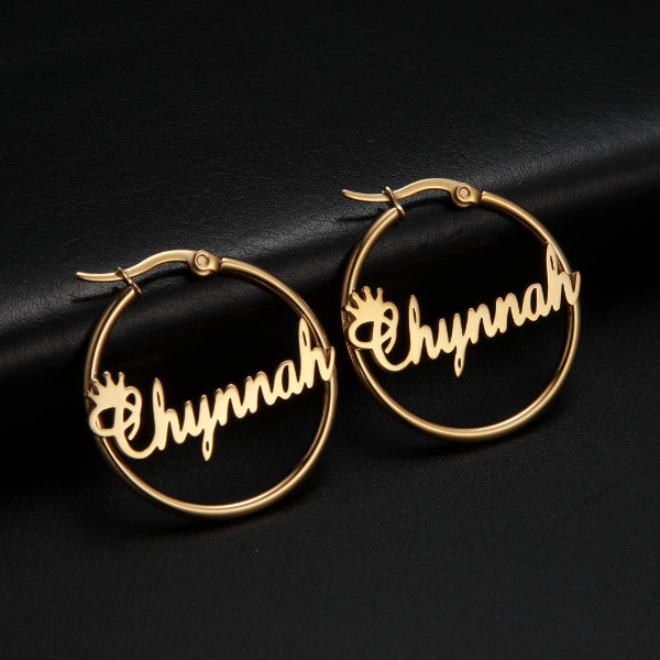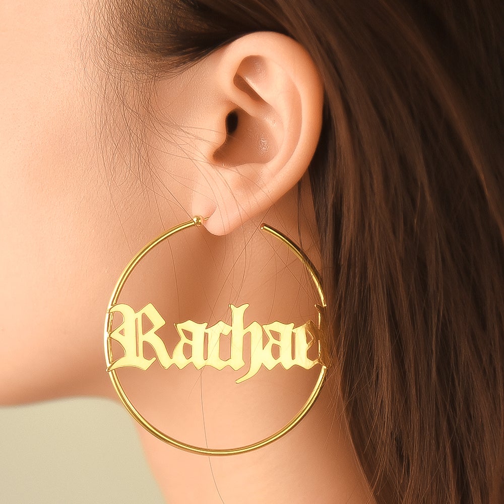 Hoop Earrings Personalised Custom Gold Plated Name Earrings Gift For Women Girl Mom Wife