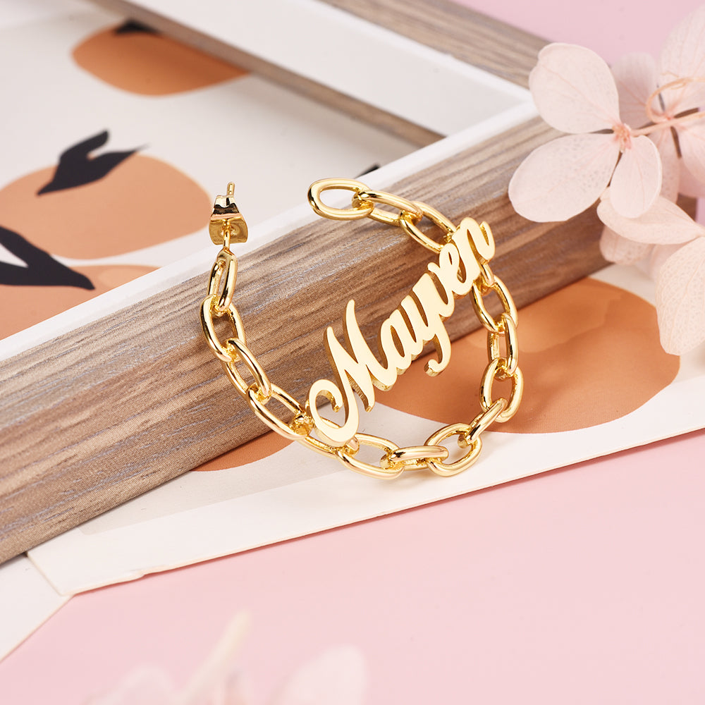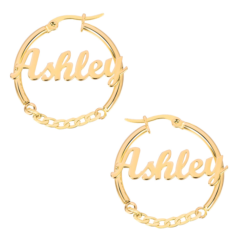 Personalized Gold Plated Chain Look Hoop Name Earrings