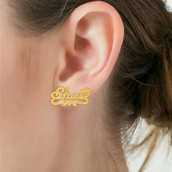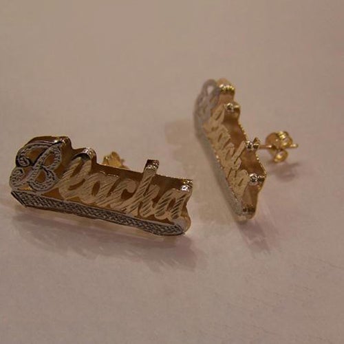Double Plate Two Tone Personalized Custom Gold Plated Name Stud Earrings