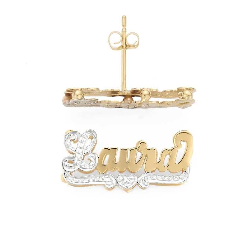 Double Plated Two Tone Personalized Custom Stud Name Earrings with Heart