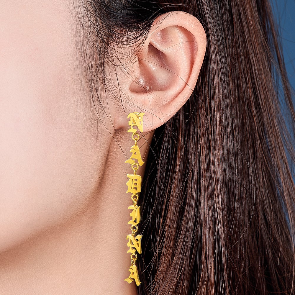Old English Font Stud Gold Plated Personalized Name Earrings