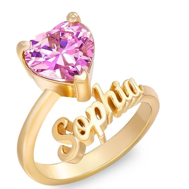 Heart Birthstone Personalized Custom Gold Plated Name Ring Mother Gift