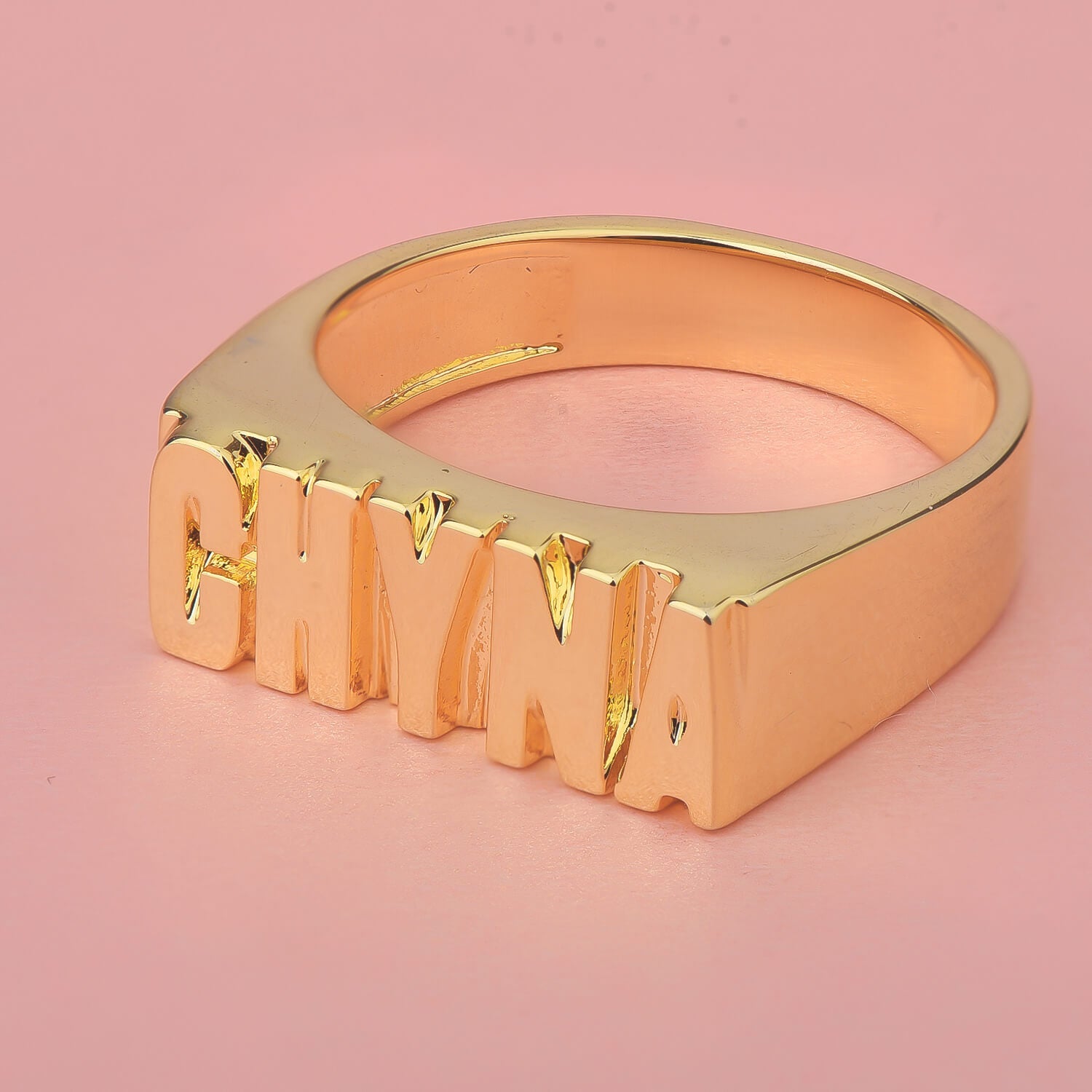 Gold Plated Personalized Custom Name Ring Cuban Ring