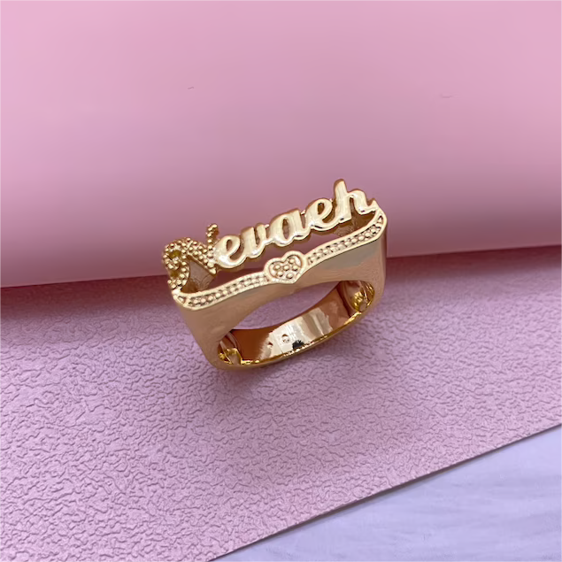 Heart Name Plate Personalized Custom Gold Plated Name Ring
