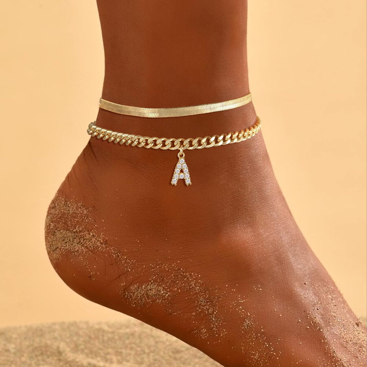 Cuban Link Chain Dainty Cute CZ Initial Anklets Personalized Cutom Initial Anklets