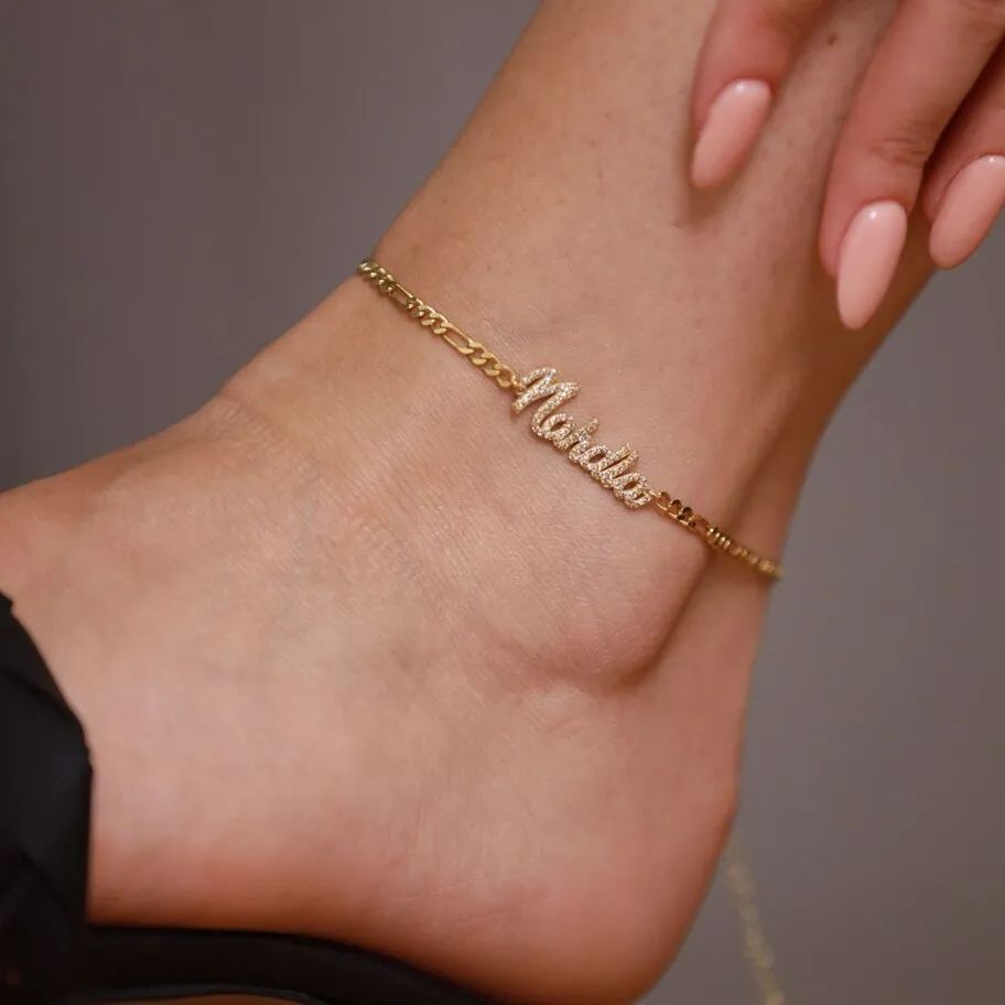 Zircon Nameplate Gold Plated Personalized Name Anklet