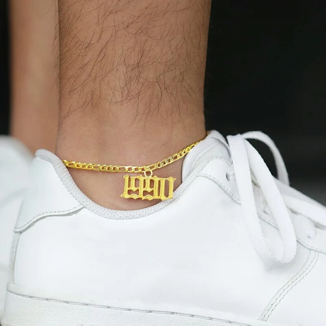 Birth Year Anklet Personalized Gold Plated Number Anklet