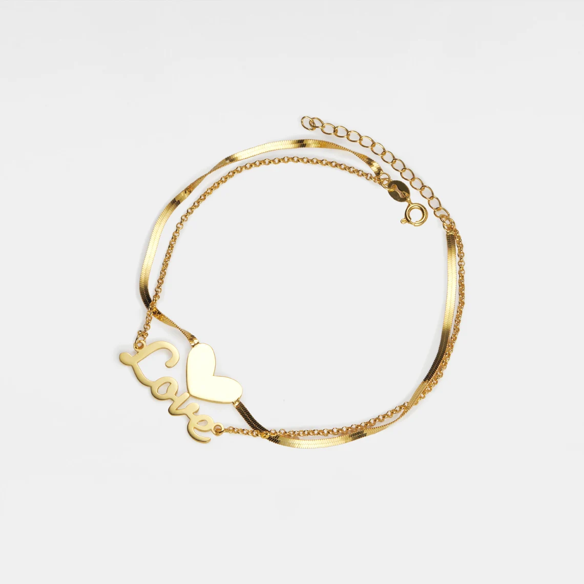 Tennis Chain Double Layer Two-tone Heart Personalized Custom Gold Plated Name Anklet
