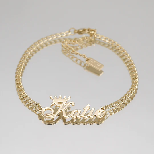 Crown Nameplated Personalized Gold Plated Custom Name Anklet
