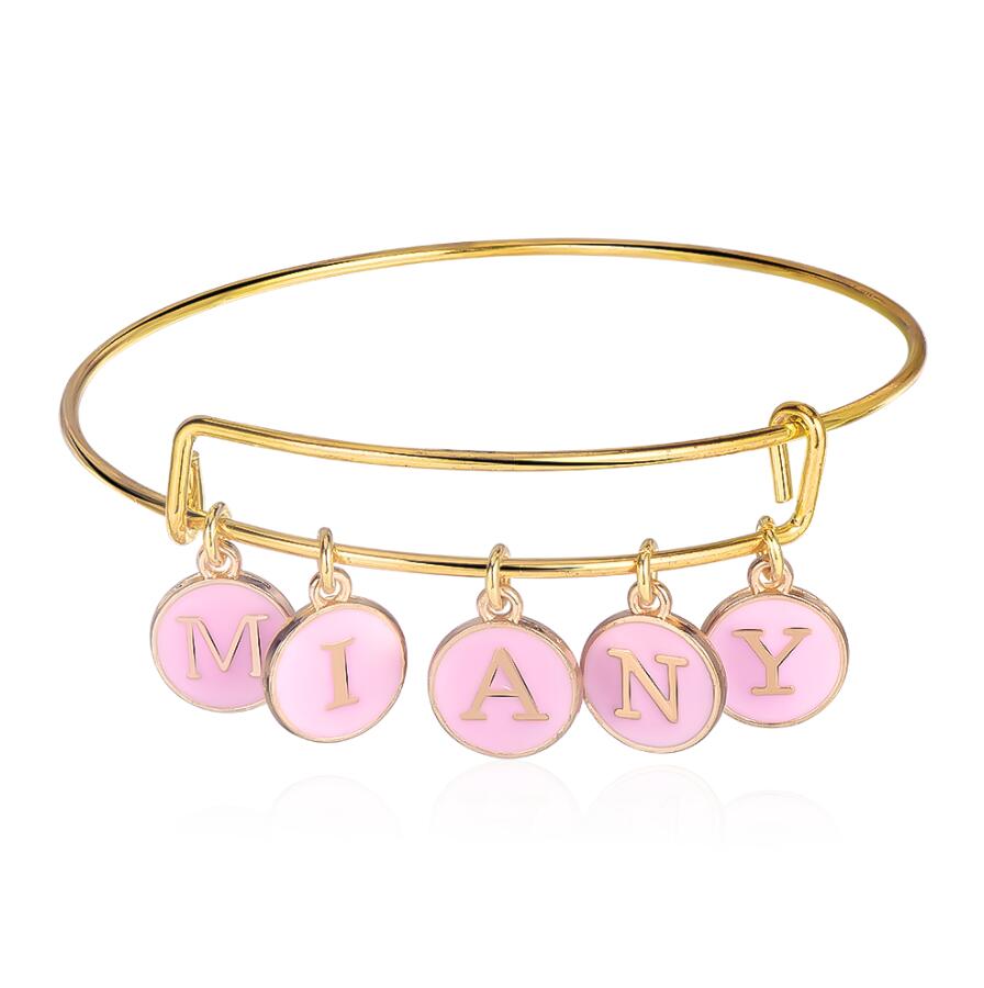 Personalized Pink Enamel Letter Name Charm Bangle Bracelet