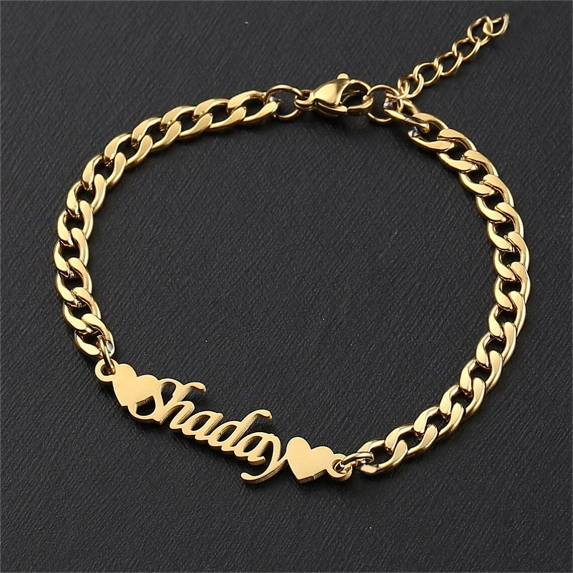 Cuban Chain Double Heart Personalized Custom Name Bangle Bracelet