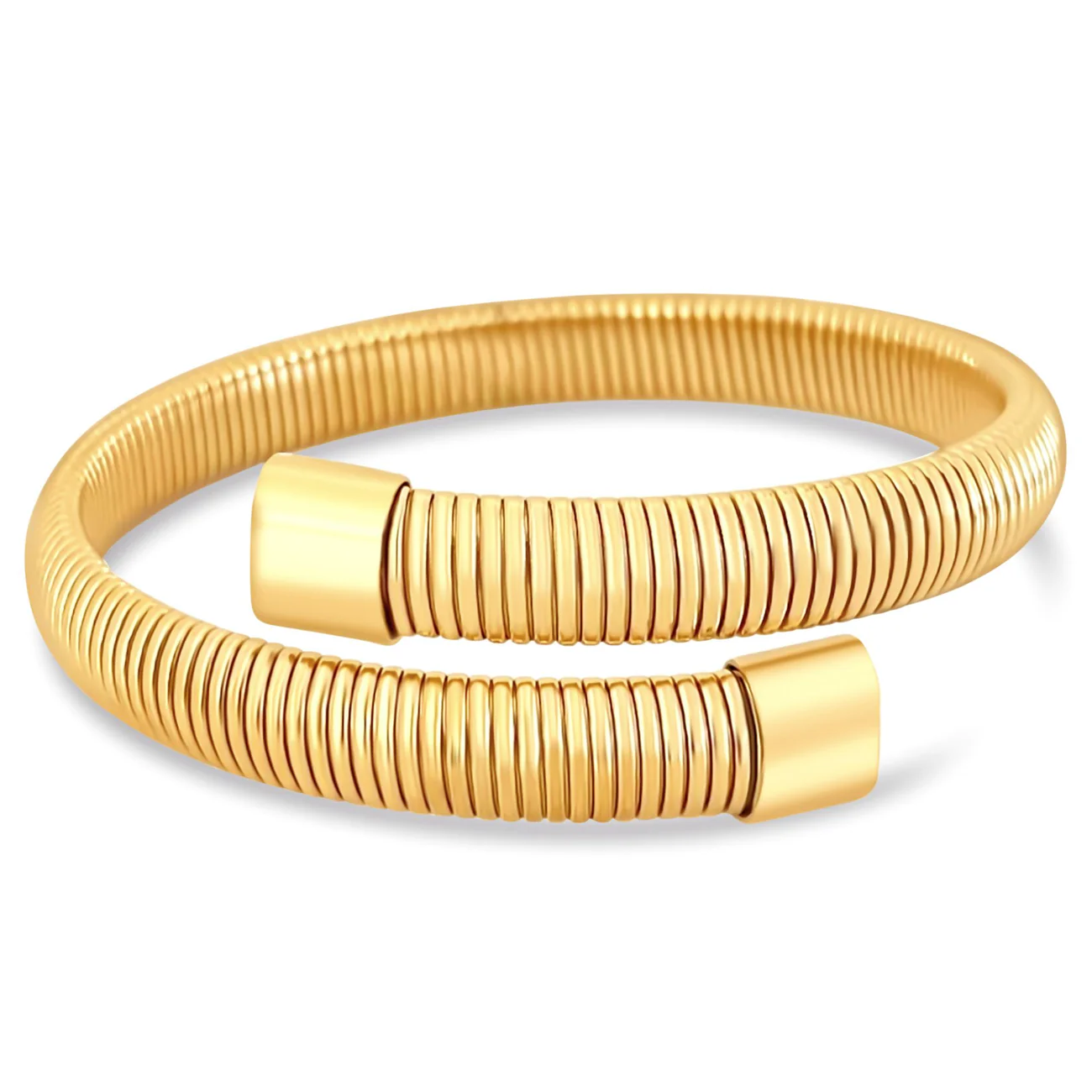 Coil Wrap Bracelet Stainless Steel Gold Plated Adjustable Bangle