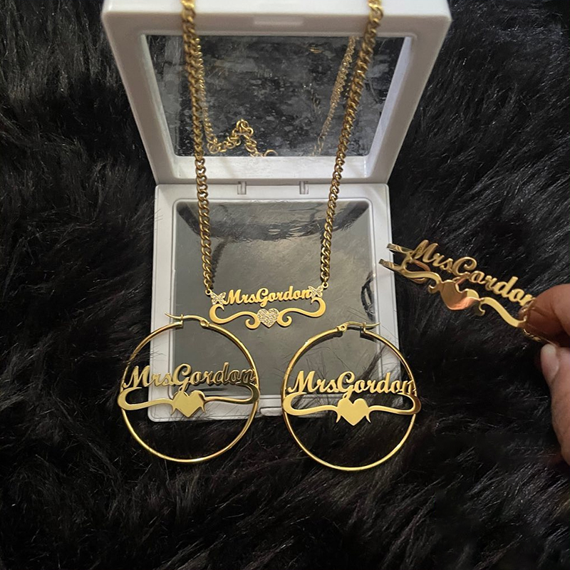 Butterfly Heart Personalized Custom 3pcs Set Name Necklace Earings Bangle
