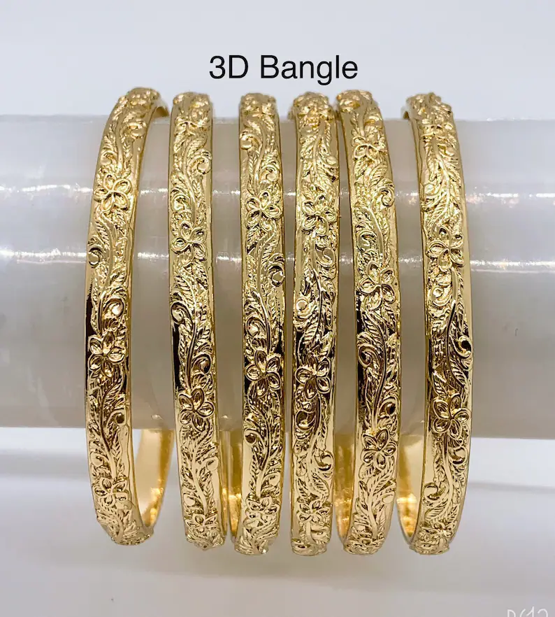 3D Diamond Cut Plumeria Flower Design Gold Plated Bangle Bracelet