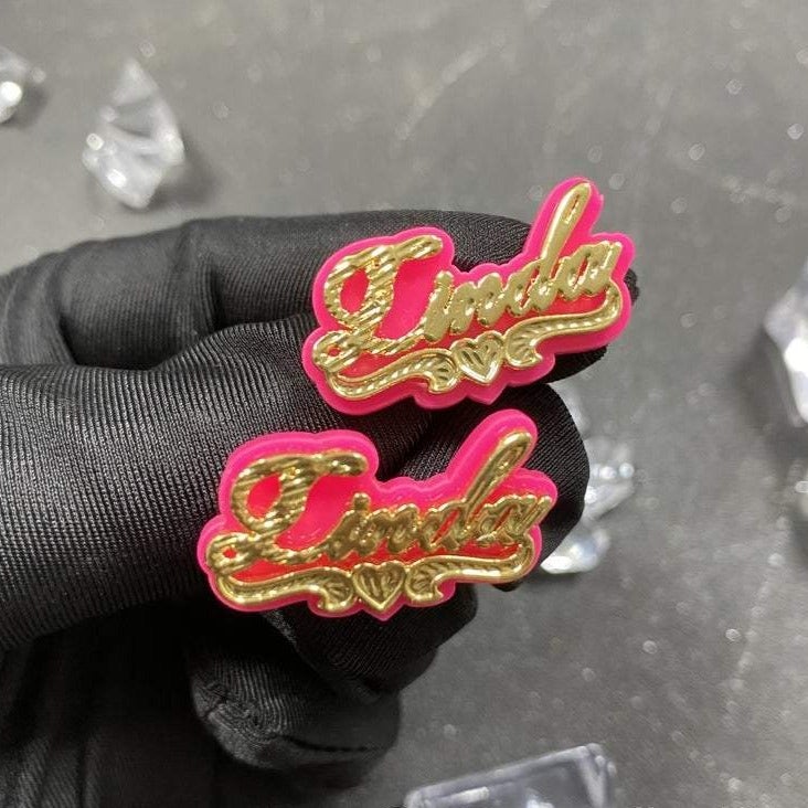 Two Tone Gold Plated Custom Personalized Acrylic Colorful Name Studs Earrings