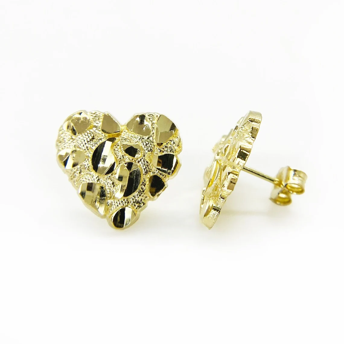 Golden Heart Nugget Stud Earrings