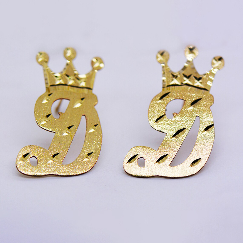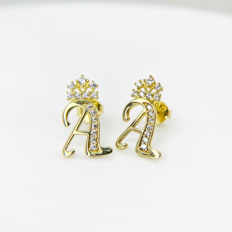 Fancy Crown Initial Letter A to Z CZ Stud Earring Personalized Custom Initial Earrings