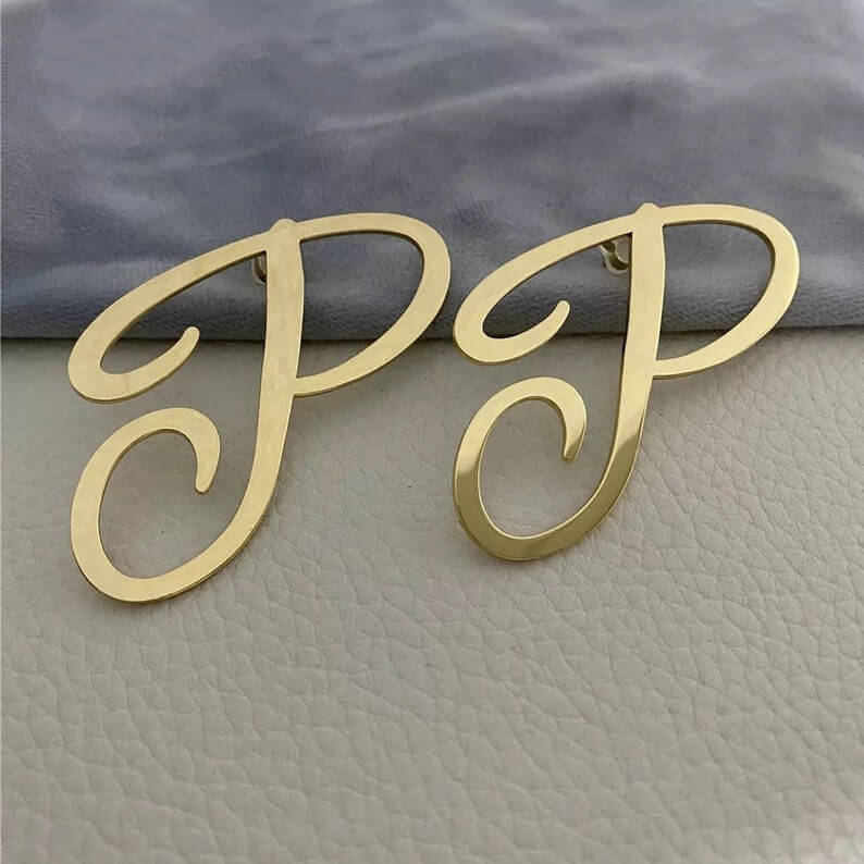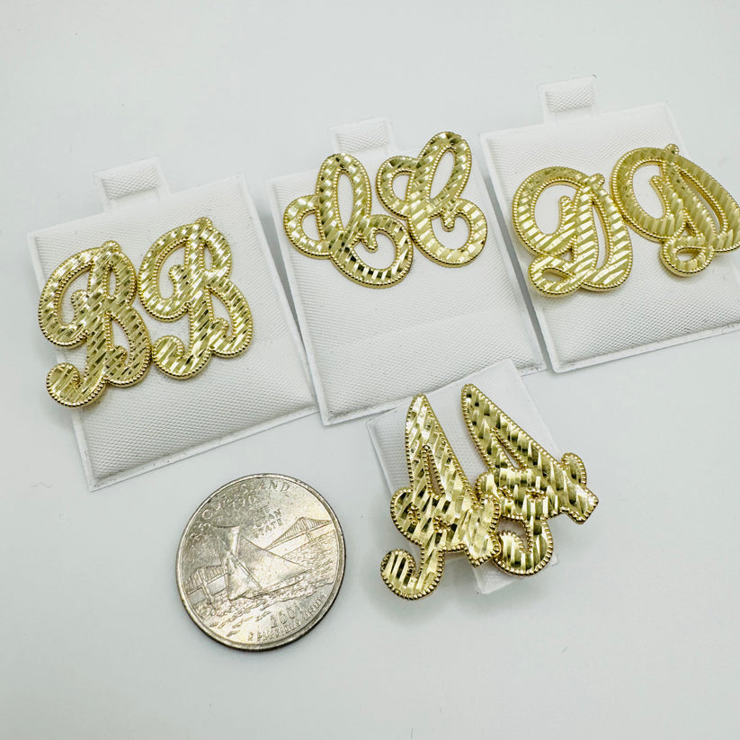 Nugget Diamond Cut Cursive Initial Earrings Personalized Initial Stud Earrings