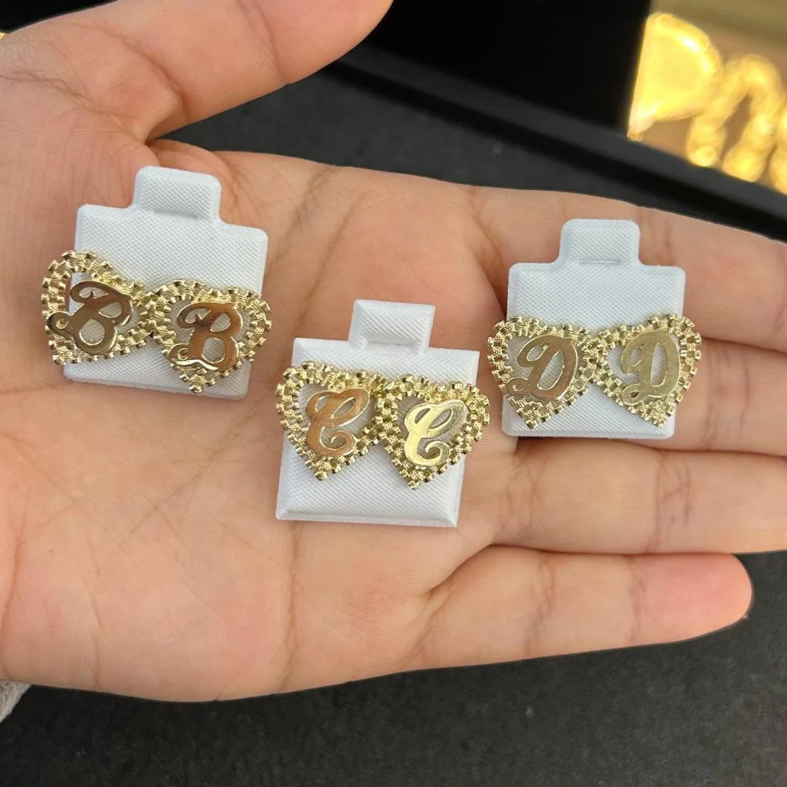 RX Style Heart Earrings Personalized Initial Stud Earrings