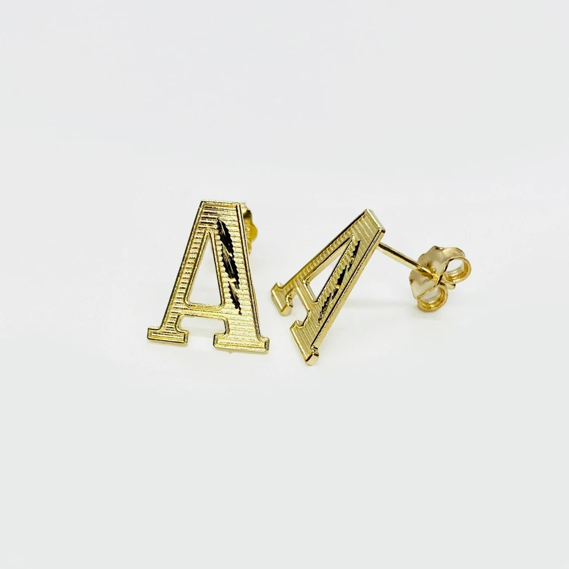 Initial Letter Alphabet Simple Diamond Cut Stud Earrings Custom Initial Earrings
