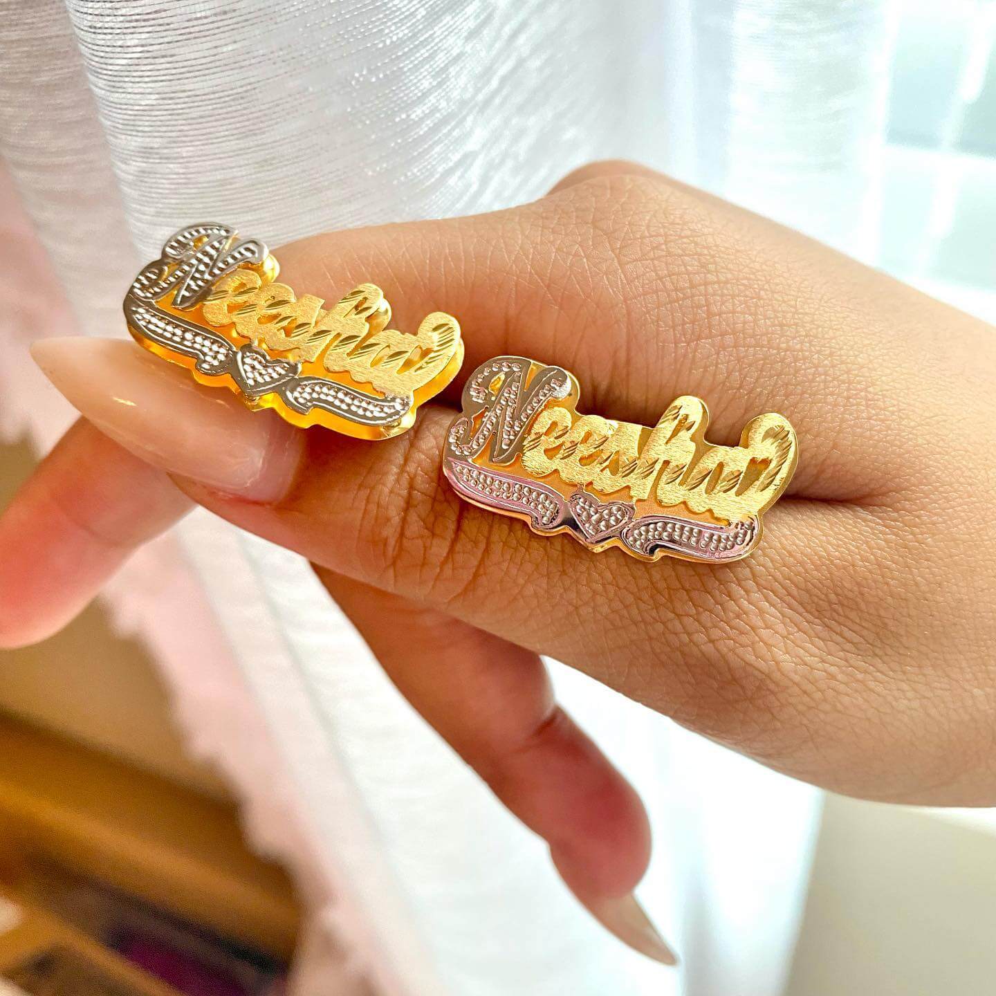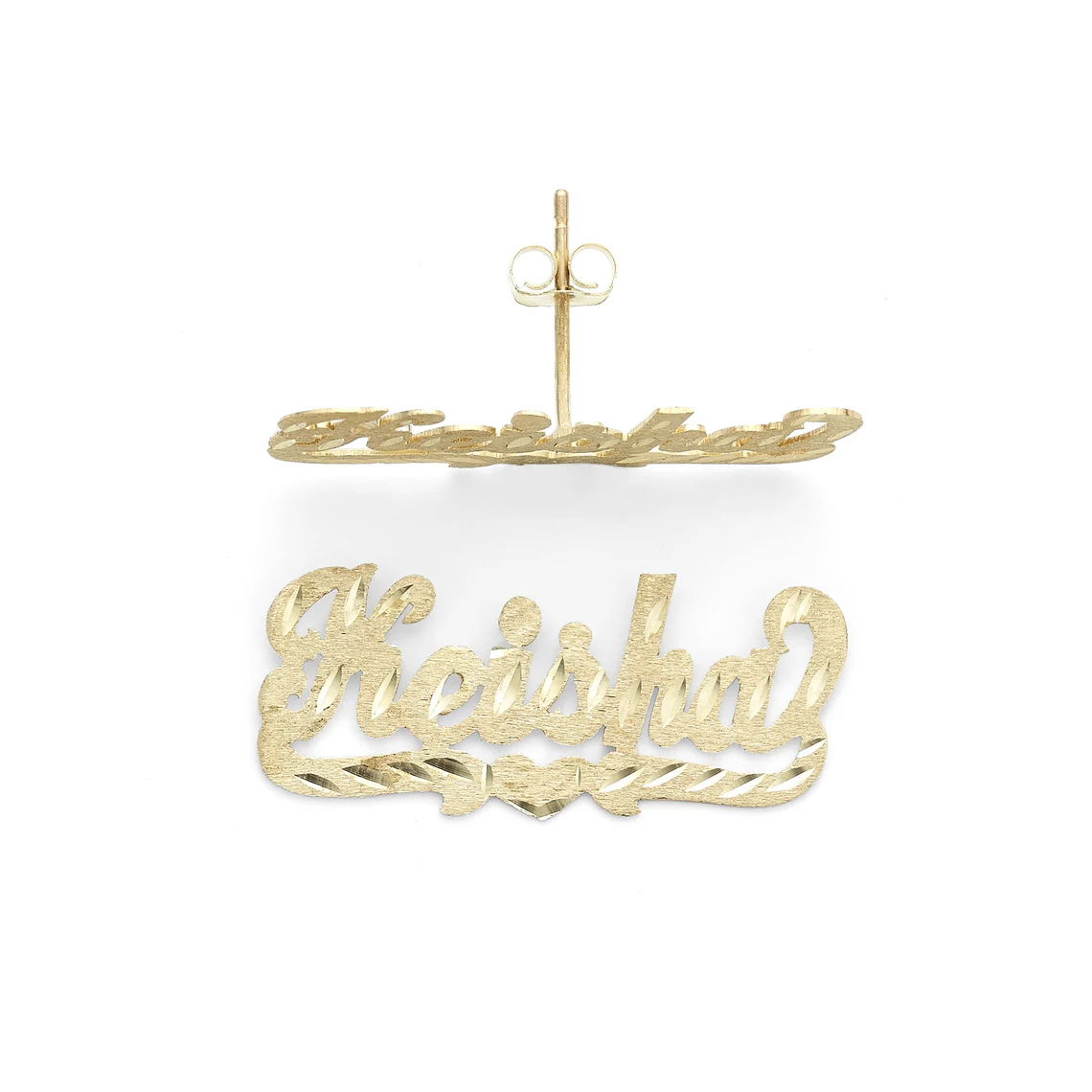 Two Tone Double Layer Personalized Custom Heart Stud Name Earrings