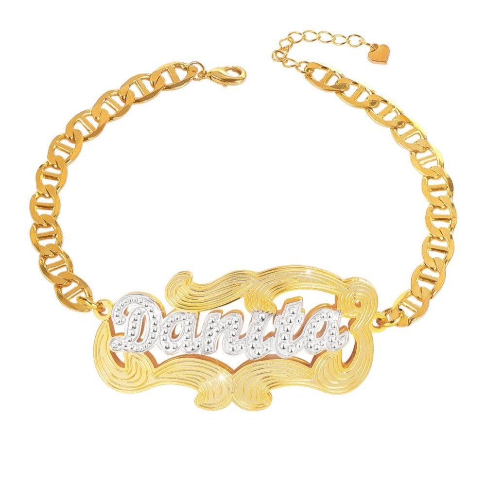 Double Layer Two Tone Personalized Custom Name Anklet Gold Plated