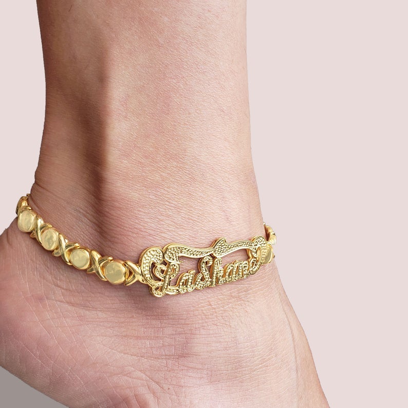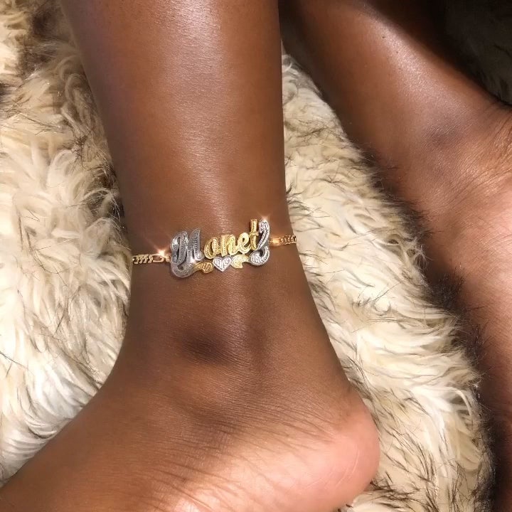 Two Tone Double Layer Custom Personalized Heart Name Anklet