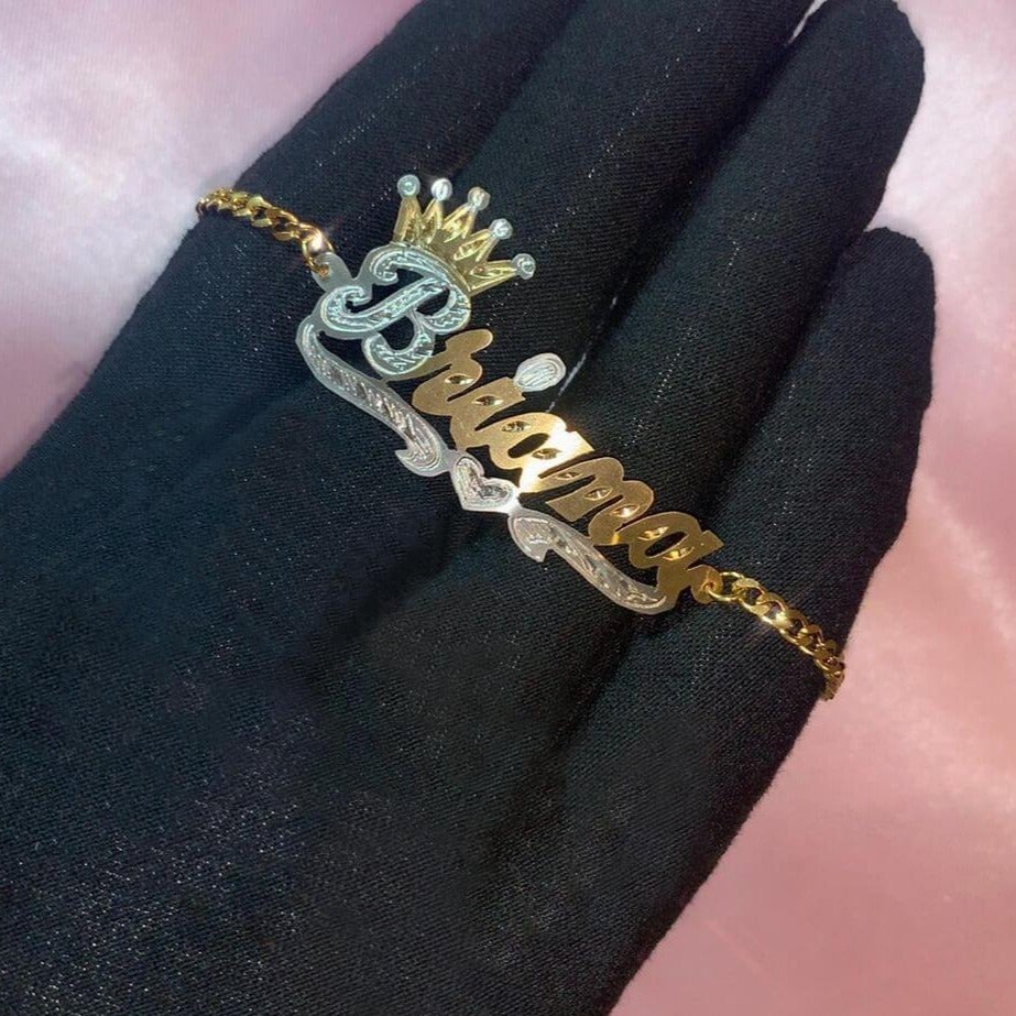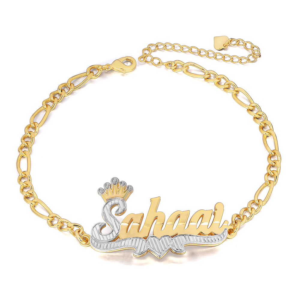 Two Tone Double Layer Crown Heart Personalized Name Anklet