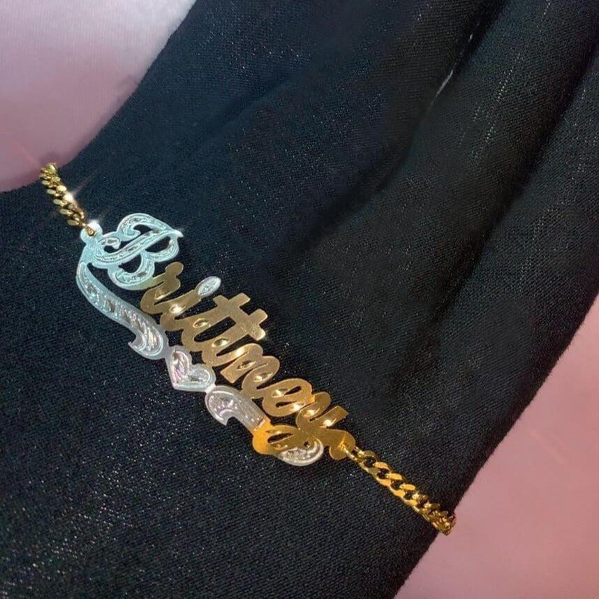 Double Layer Two Tone Personalized Custom Gold Plated Name Anklet