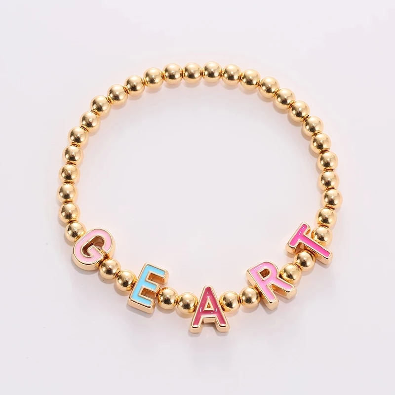 Colorful Enamel Capital Letters and Golden Beads Name Bracelet